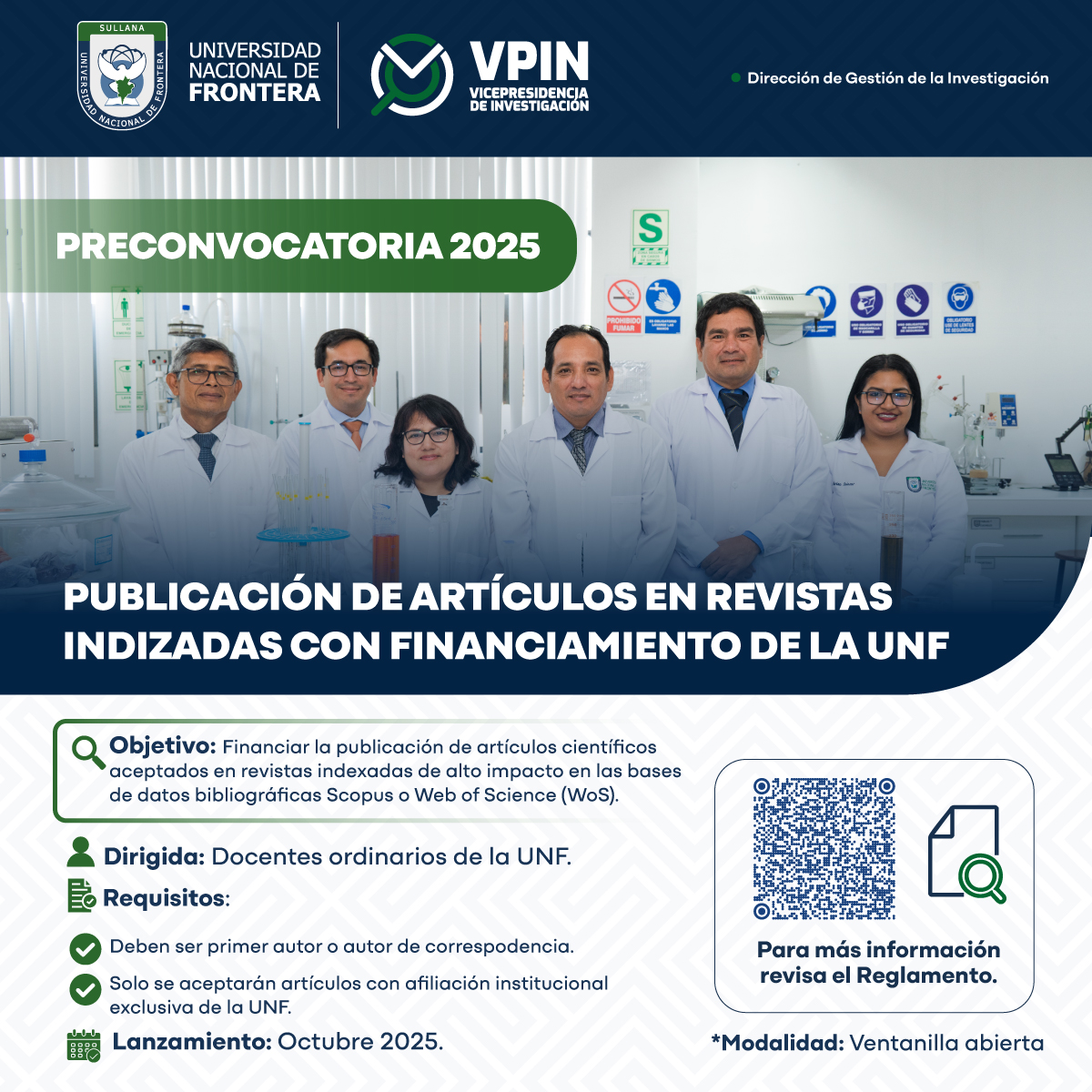 Esta convocatoria está dirigida exclusivamente a docentes ordinarios de la Universidad Nacional de Frontera interesados en publicar sus investigaciones en revistas de alto nivel académico.