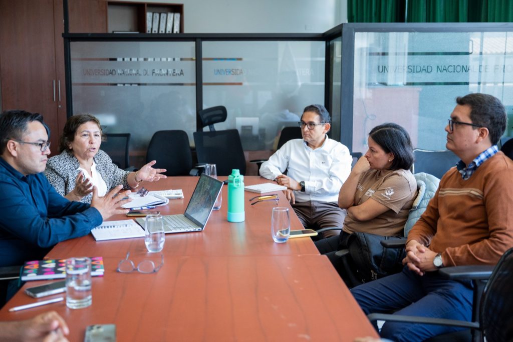 La delegación visitante estuvo integrada por la Econ. Maricarmen Vargas Machuca, el Ing. Luis Atoche y el Lic. Víctor Vivanco, quienes dialogaron con autoridades universitarias, docentes investigadores y representantes de grupos de investigación de la UNF.